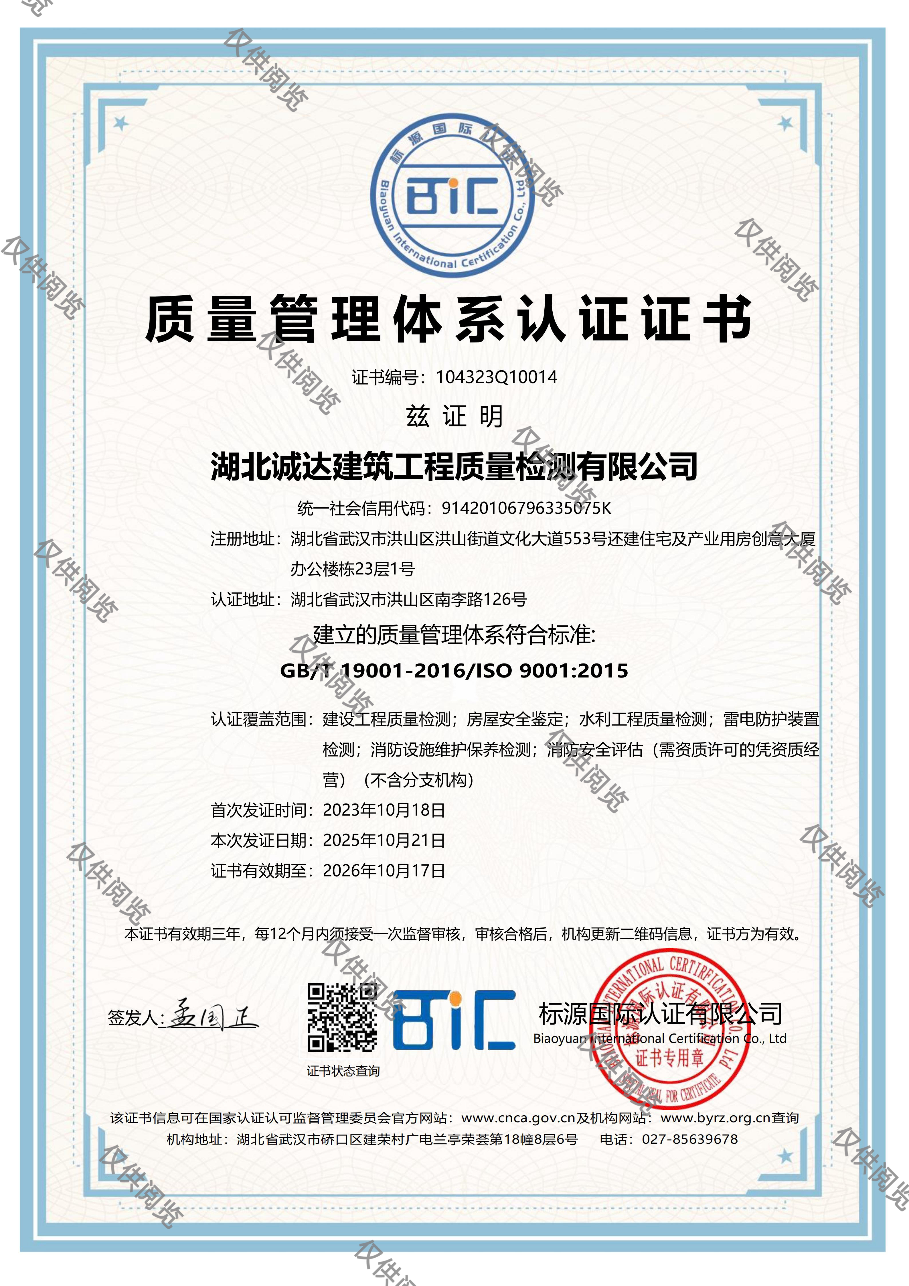 公司名稱:湖北誠達建筑工程質量檢測有限公司